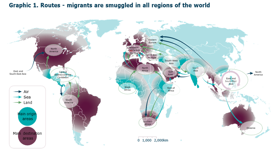Source (adapted) and credit: UNODC, Global Study on Smuggling of Migrants, 2018, page 11