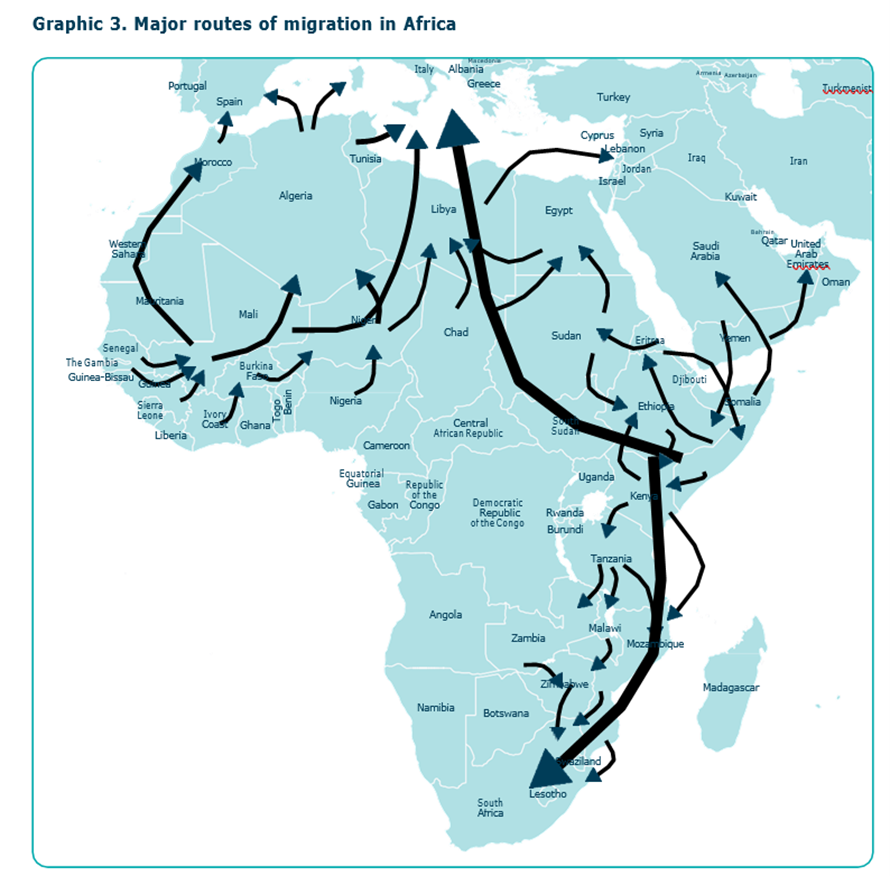 Most media coverage and research about irregular migration from Africa focuses on routes from the Horn of Africa, West Africa, and Central Africa through the Sahara to Libya and then across the Mediterranean. As explored in detail below, the dominance of this focus obscures several important facts. First, most of those entering Libya regard it as a final destination because of the employment opportunities there. Second, there are many other routes from Africa to Europe. For example, the Spanish enclaves of Ceuta and Melilla in Morocco, and the (Spanish) Canary Islands just 100 kilometres off Morocco’s Atlantic coast have been transit/destination targets for many years, as has the French island territory of Mayotte in the Indian Ocean. Third, the world’s busiest maritime route for migrants and asylum seekers does not cross the Mediterranean but runs from the Horn of Africa to the Arabian Peninsula (notwithstanding anomalies during the Covid-19 pandemic). Fourth, more than half of the African nationals living in OECD countries originate from North Africa. Fifth, almost 75 percent of migrants from sub-Saharan Africa remain within the continent, a trend that has major demographic implications.