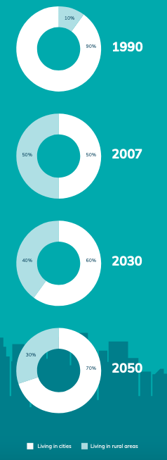 Urban and rural population of the world, 1990-2050