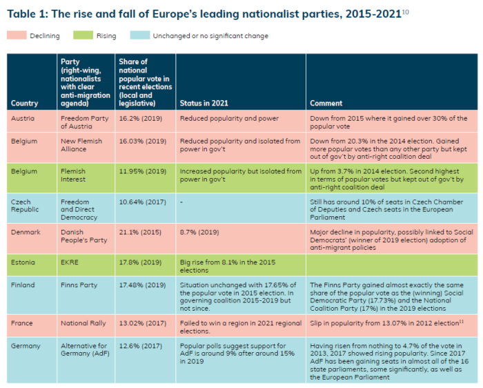 [2] Broadly, anti-migration agendas are commonly explicit in nationalistic, often far-right parties which may be ‘populist’ and, if European, often also Eurosceptic.