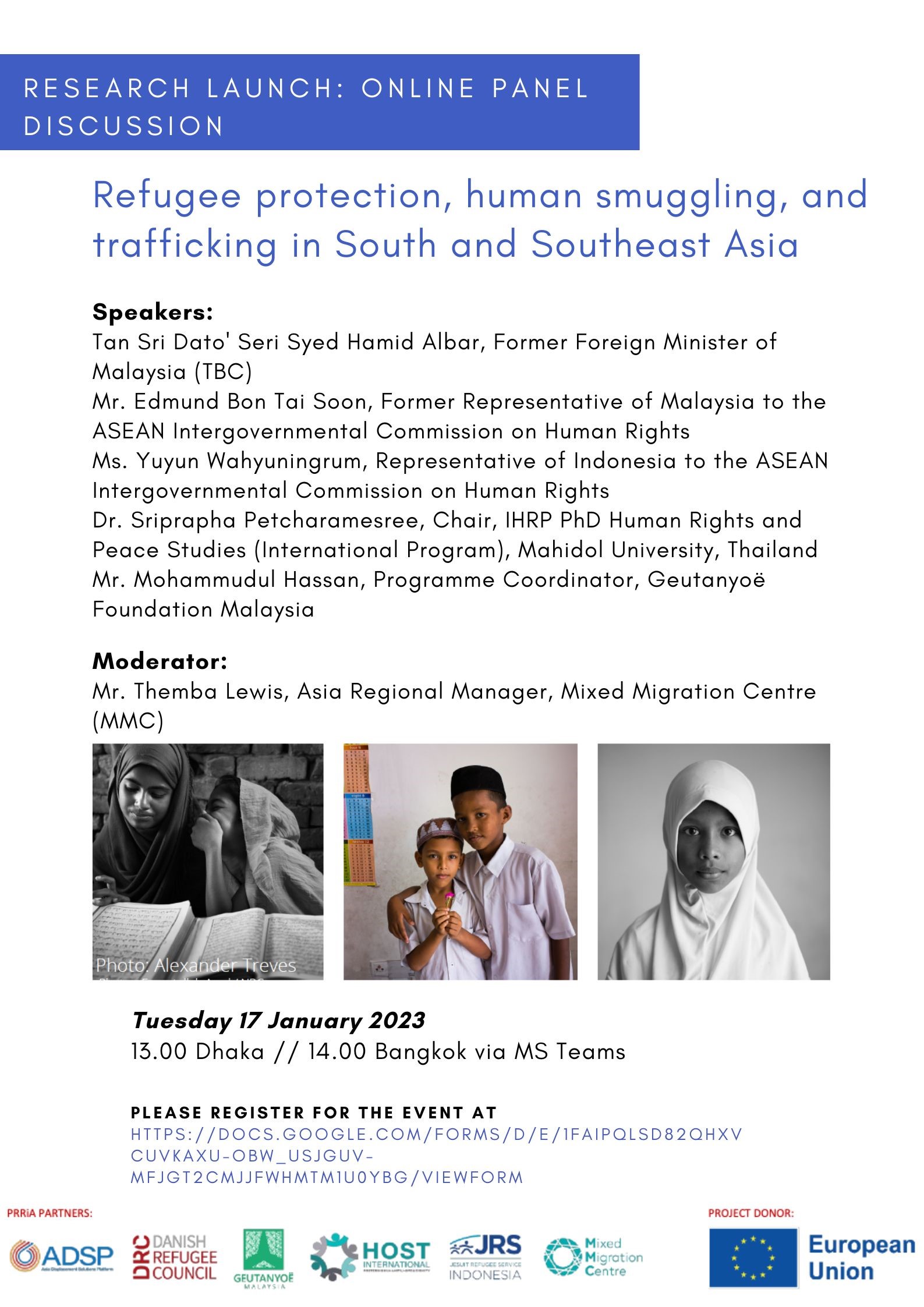 The virtual report launch for the study on “Refugee protection, human smuggling, and trafficking in South and Southeast Asia”, will be held on 17 January 2023. The report explores Bangladesh and Myanmar as origin countries and examines the drivers, risks, and routes of Rohingya movement to Thailand, Indonesia, and Malaysia across 3 thematic domains: protection, human trafficking, and human smuggling. It is a part of the Protecting Rohingya Refugees in Asia (PRRiA) project.