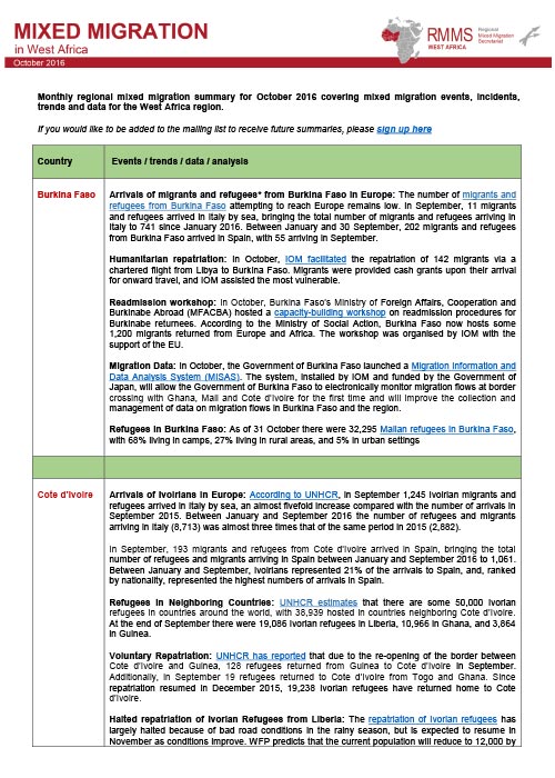 In September, 9,669 migrants and refugees from West Africa arrived in Italy by sea via the central Mediterra- nean route, including 4,843 from Nigeria, 1,245 from Cote d’Ivoire, 1,039 from Gambia and 1,001 from Mali.