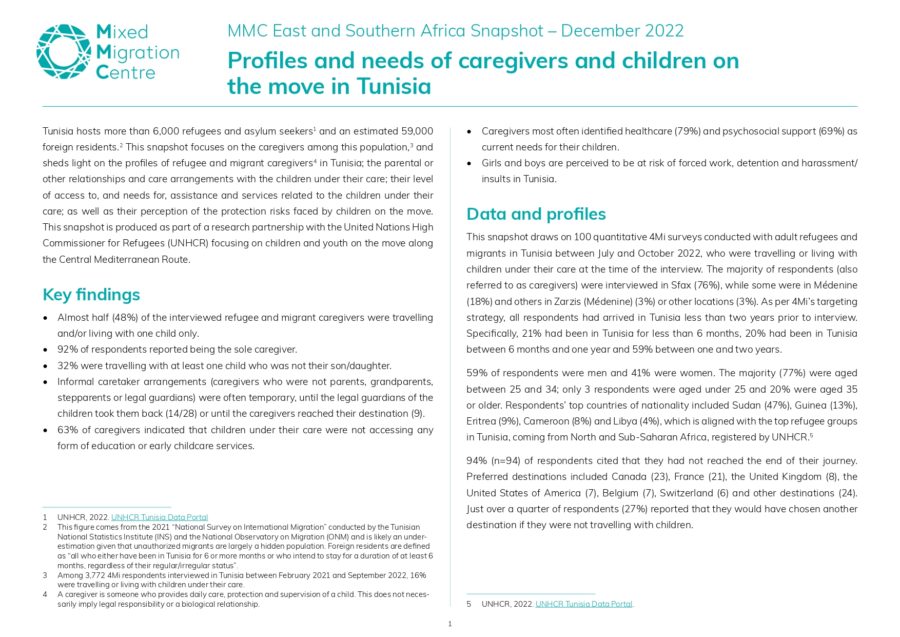 Profiles and needs of caregivers and children on the move in Tunisia