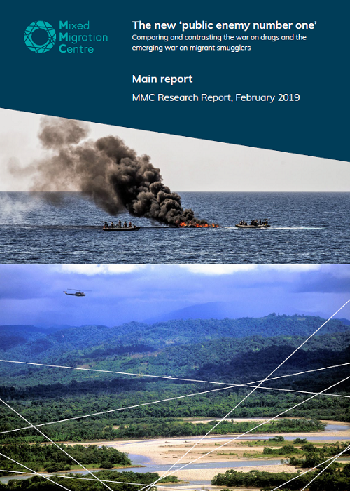 There are those who seek to apply the experience of the war on drugs to the emerging war on migrant smugglers to warn that such a confrontation carries high costs, low chances of success and would likely lead to an escalation of violence against the migrants themselves. Such arguments suggest we should learn from the war on drugs’ failures, and design different policy and criminal justice responses to irregular migration and human smugglers so as not to repeat past and ongoing failures. This research report examines this hypothesis; that the war on drugs is analogous to the war on migrant smuggling and that the lessons derived from the war on drugs are applicable to current policy makers around migration. Using a compare-and-contrast analysis it looks at the intrinsic aspects of the commodities themselves (substances vs migrants), the dynamics and modalities of the respective illicit economies, the lessons learnt from the war on drugs, the policy environment and implications of using alternative approaches, namely ‘legalising’ drugs and/or new approaches, inter alia, towards decriminalizing irregular migration.