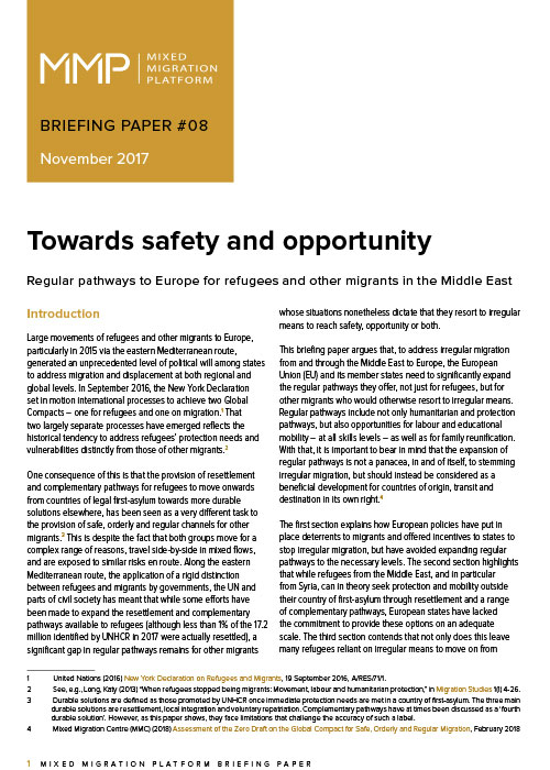 Regular pathways to Europe for refugees and other migrants in the Middle East
