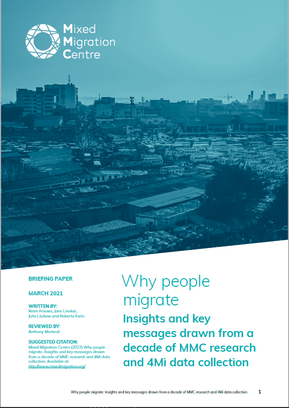 The question of why people migrate — the drivers and decision-making processes their journeys entail — has therefore been a primary focus of the Mixed Migration Centre (MMC). This paper, based on a decade of extensive research and expert analysis, including more than 100,000 4Mi surveys of refugees and migrants, synthesizes our key insights and sets out five key messages.